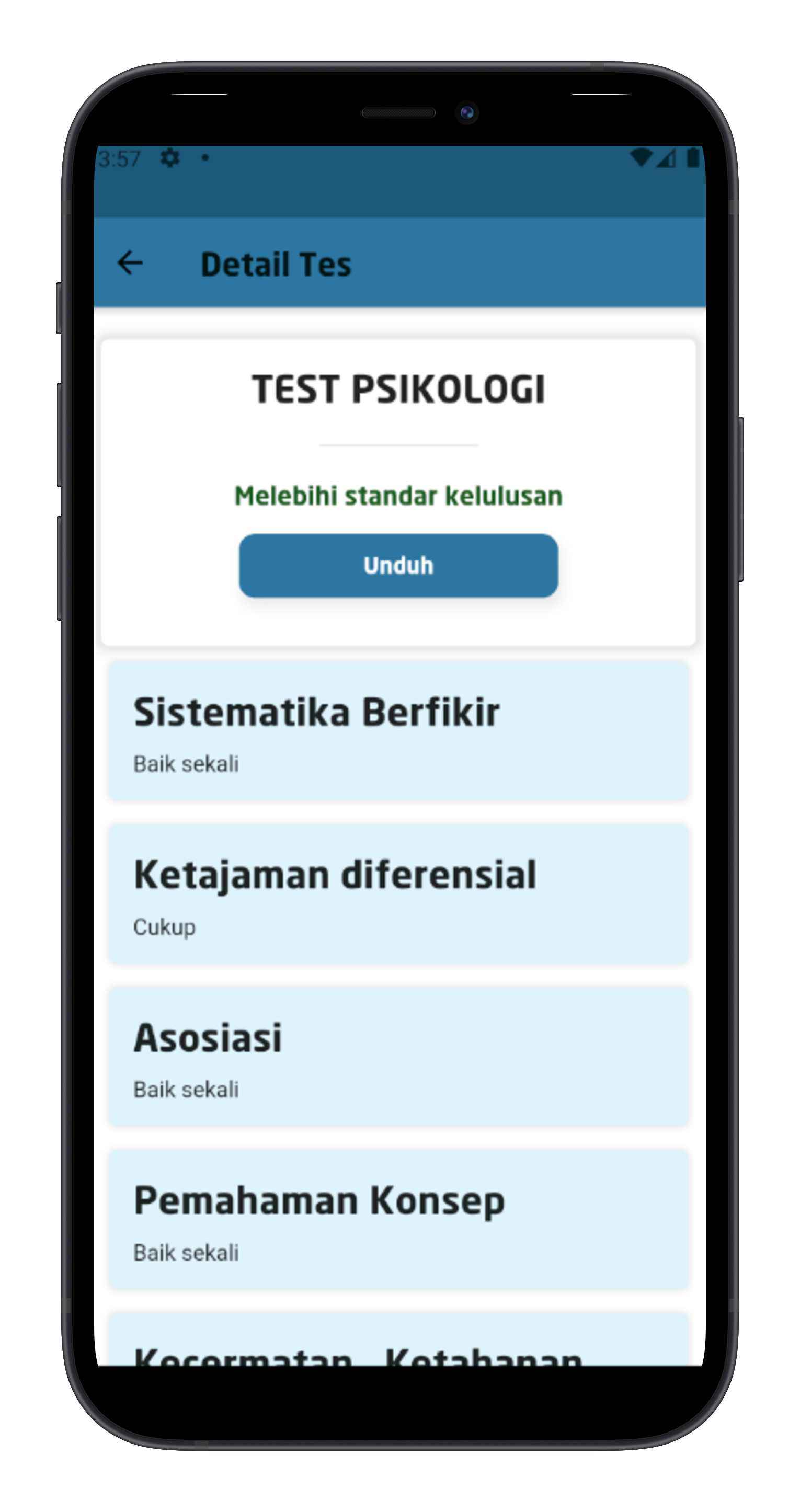 Sistem kami akan menghitung lansung hasil test, ketika anda sudah mengngerjakan seluruh bagian test, sehingga anda dapat mendownload sertifikat ketika di nyatakan lulus